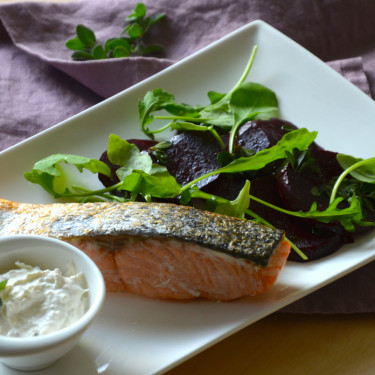 Losos s červenou řepou, křenem a majoránkou